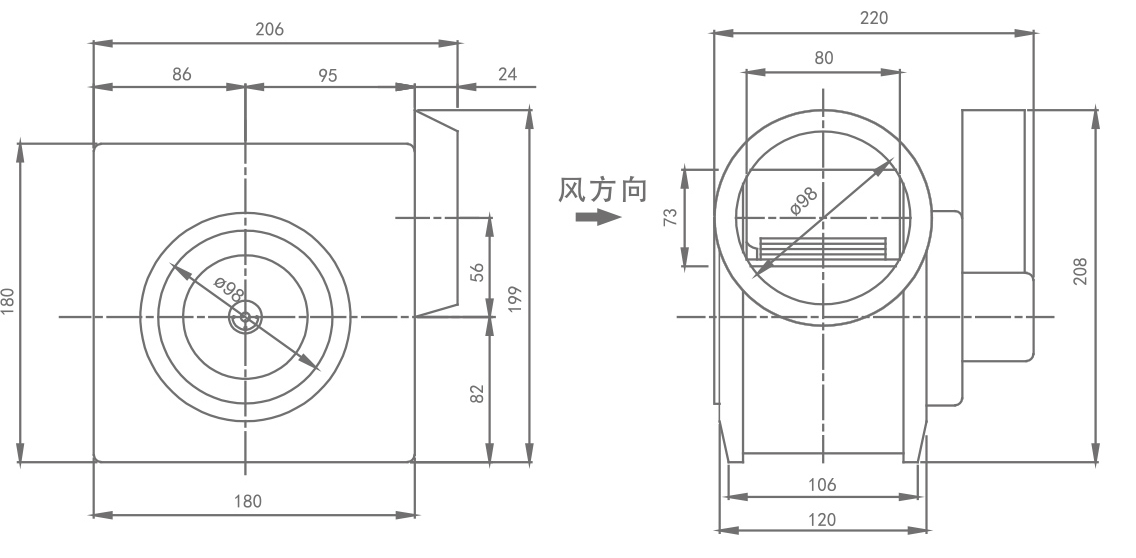 | 型号 | 电压(V) | 额定功率(W) | 风量(m3/h) | 静压(Pa) | 噪音 d( B A) | 重量(Kg) | 包装尺寸(mm) |
